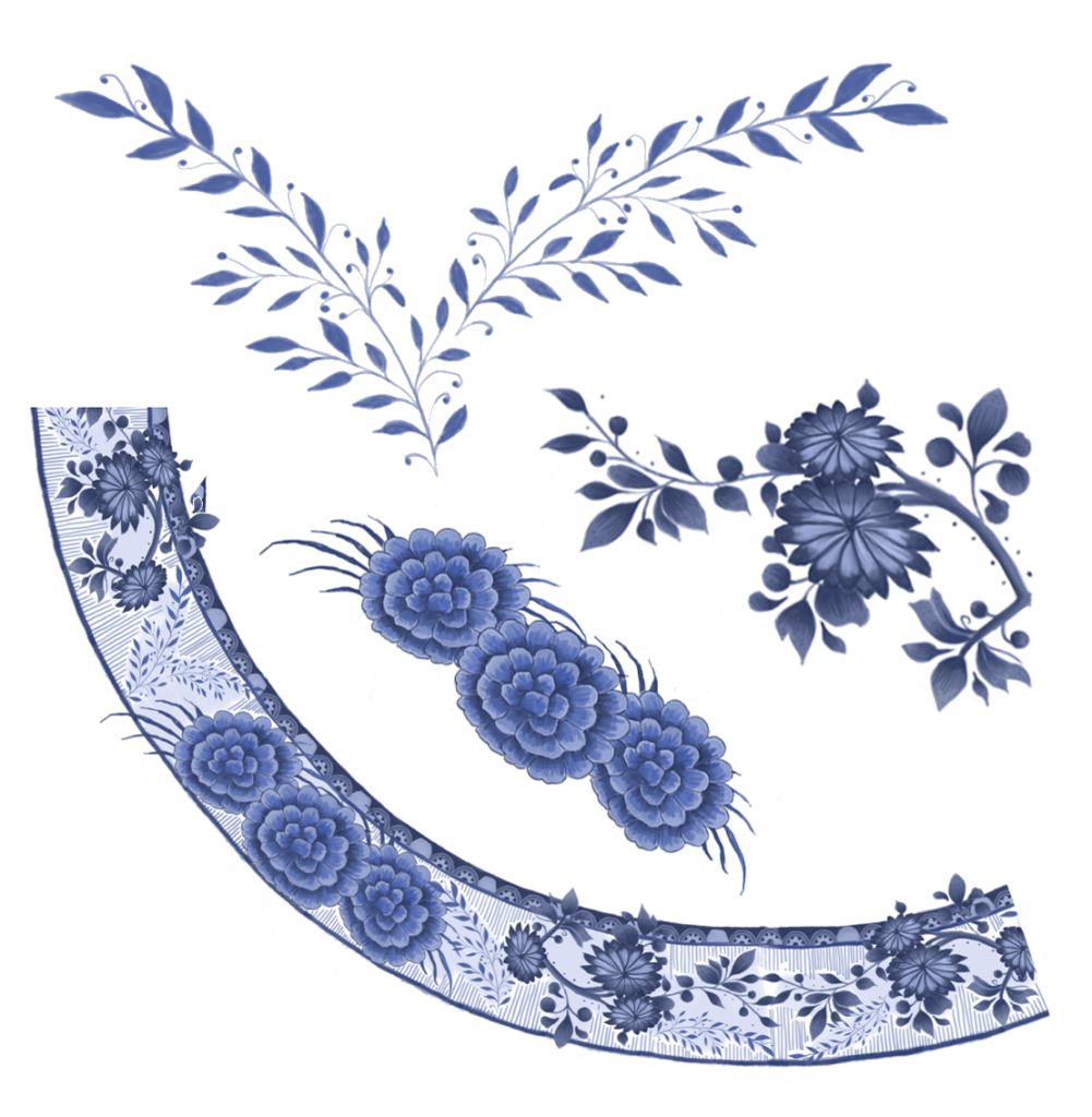 Pattern design for a plate and basin, this design will be used to surround the sketches above, the brief was ‘floral pattern design’ in keeping with the blue colour palette from the sketches.